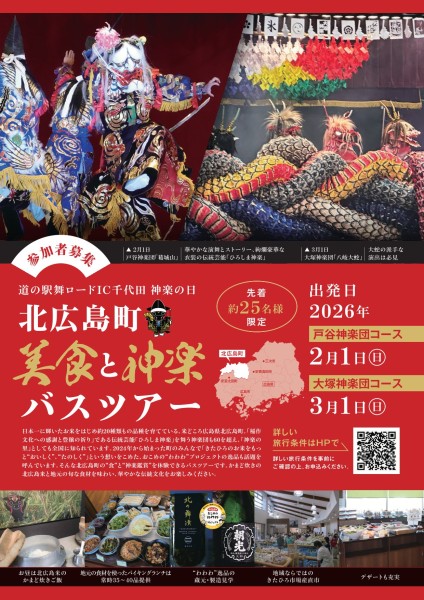 北広島町の名産を味わい、伝統芸能「神楽」を間近で体感する北広島町づくしツアー。